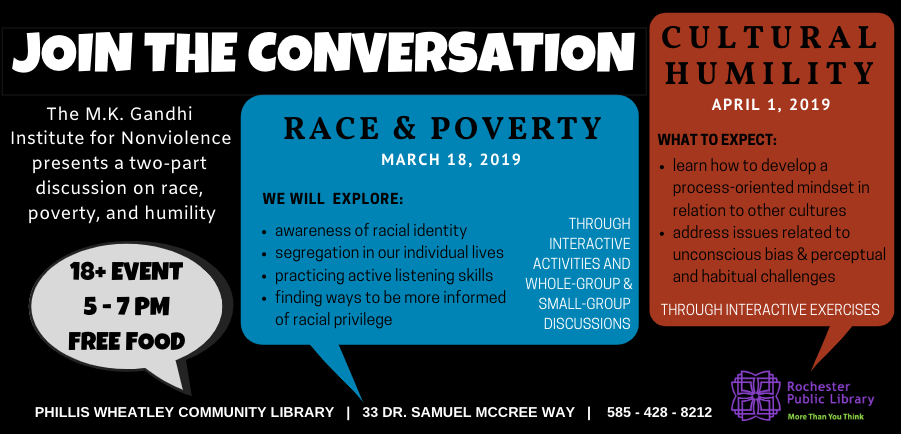 In conjunction with Phillis Wheatley Community Library, we will be hosting a discussion on race and and poverty for adults 18 and older.