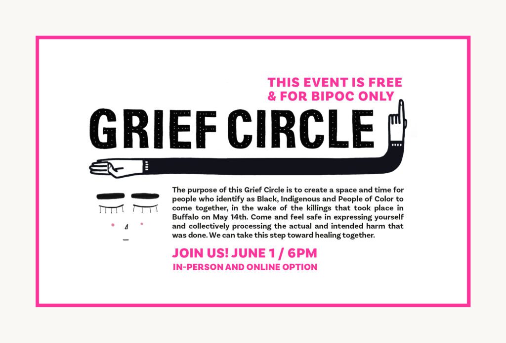 The purpose of this Grief Circle is to create a space and time for people who identify as Black, Indigenous and People of Color to come together, in the wake of the killings that took place in Buffalo on May 14th. Come and feel safe in expressing yourself and collectively processing the actual and intended harm that was done. We can take this step toward healing together.