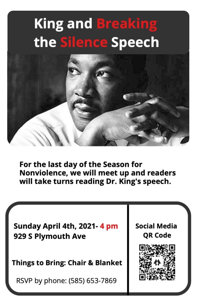 In celebration of the last day of the Season for Nonviolence, we are joining in a nationwide series of events to come together and read Dr. King’s Vietnam War Speech of April 4th, 1967. You’ll have the option to join us outside the Gandhi Institute to be a part of the reading, or to watch our Facebook live video.