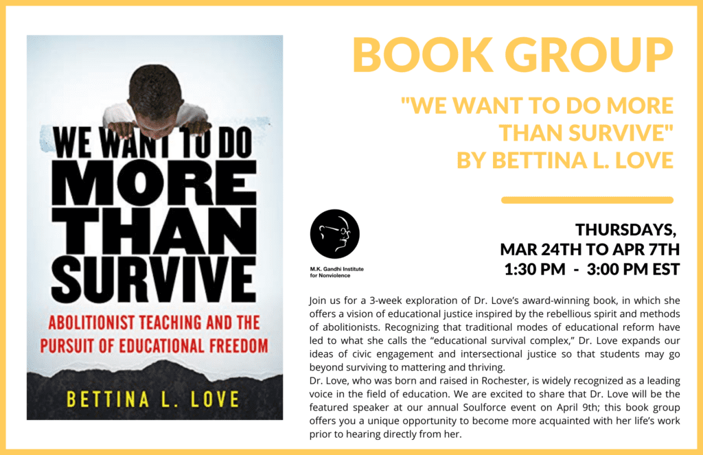 Dr. Love, who was born and raised in Rochester, is widely recognized as a leading voice in the field of education. We are excited to share that Dr. Love will be the featured speaker at our annual Soulforce event on April 9th; this book group offers you a unique opportunity to become more acquainted with her life’s work prior to hearing directly from her.