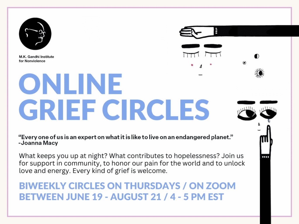 What keeps you up at night? What contributes to hopelessness? Join us for support in community, to honor our pain for the world and to unlock love and energy. Every kind of grief is welcome.