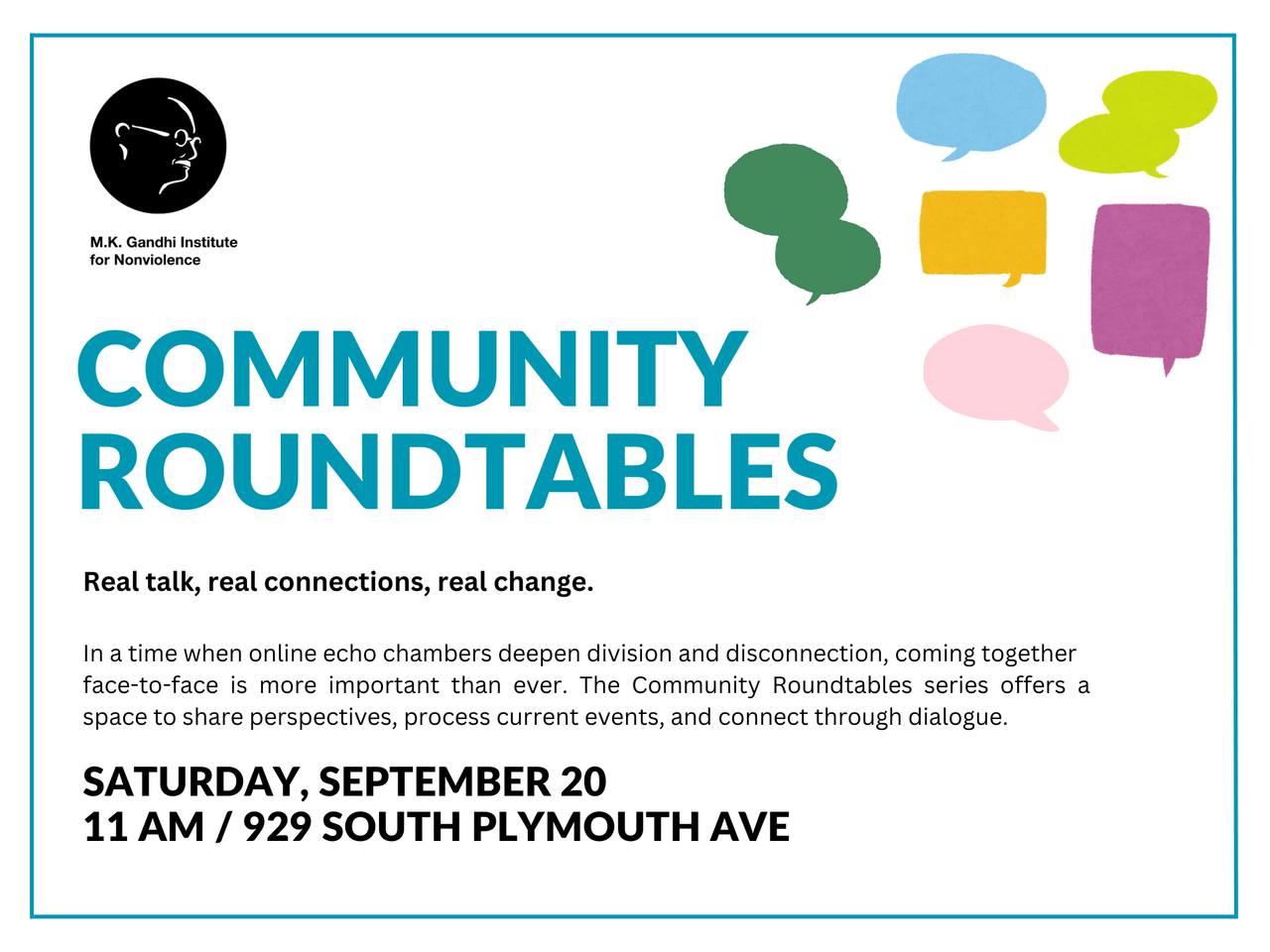 Each session will focus on open dialogue or specific topics that matter to the Rochester community—some selected by Gandhi Institute staff and others chosen by participants based on pressing issues and events. Through open conversation, we cultivate understanding and plant the seeds for collective action—whether by strengthening existing efforts or inspiring new initiatives. Join us as we listen, reflect, and build a more connected community.